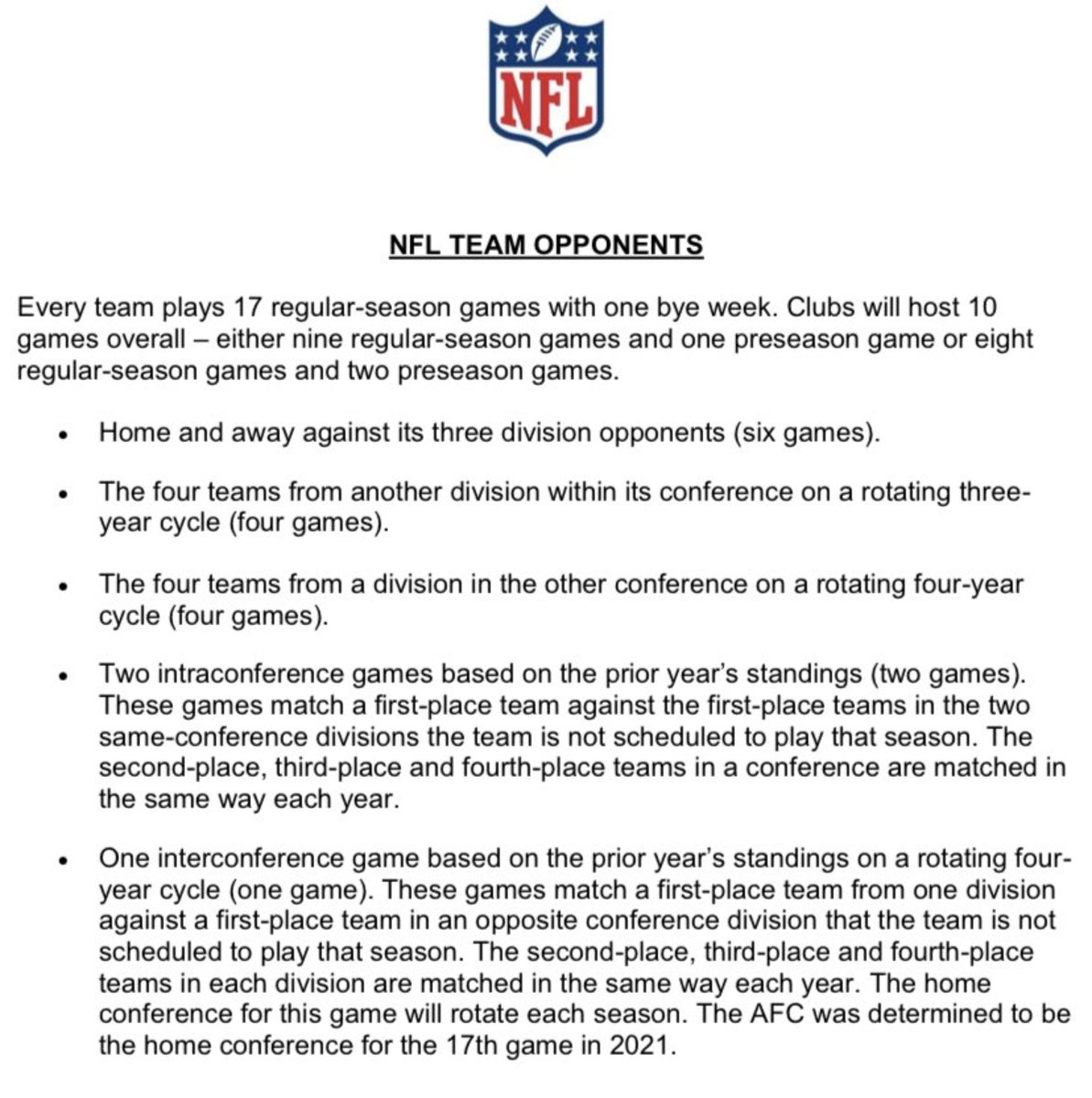 The nfl future opponents are based on the nfl's scheduling rotation.